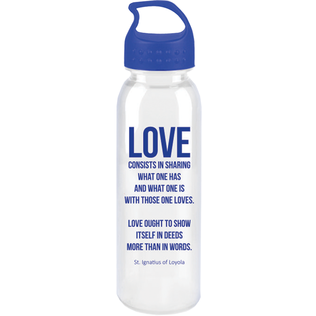 24 oz. Tritan (TM) BPA Free Water Bottle. Imprinted with ISN Logo on one side and St. Ignatius of Loyola LOVE quote on the other side.