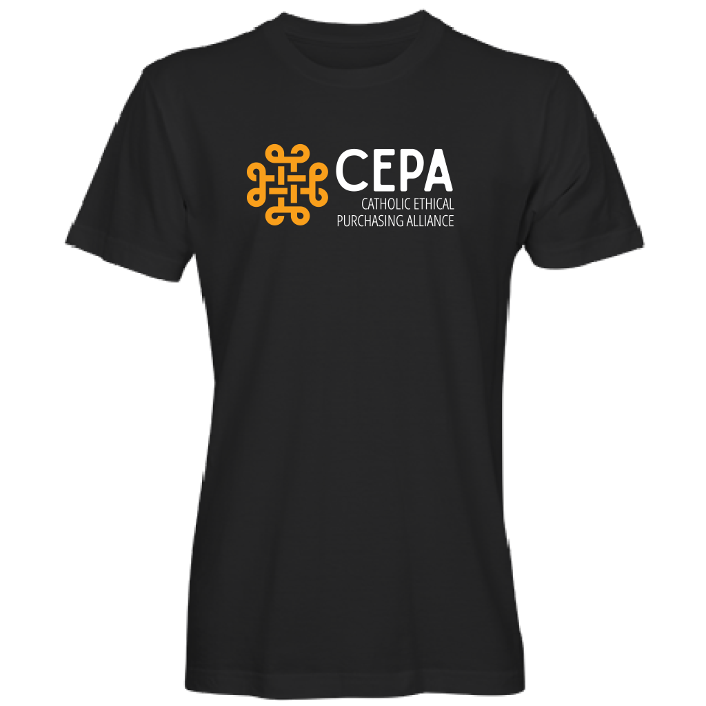 The Catholic Ethical Purchasing Alliance (CEPA) Logo imprinted on the sustainable, USA Made 'Homegrown' t-shirt.