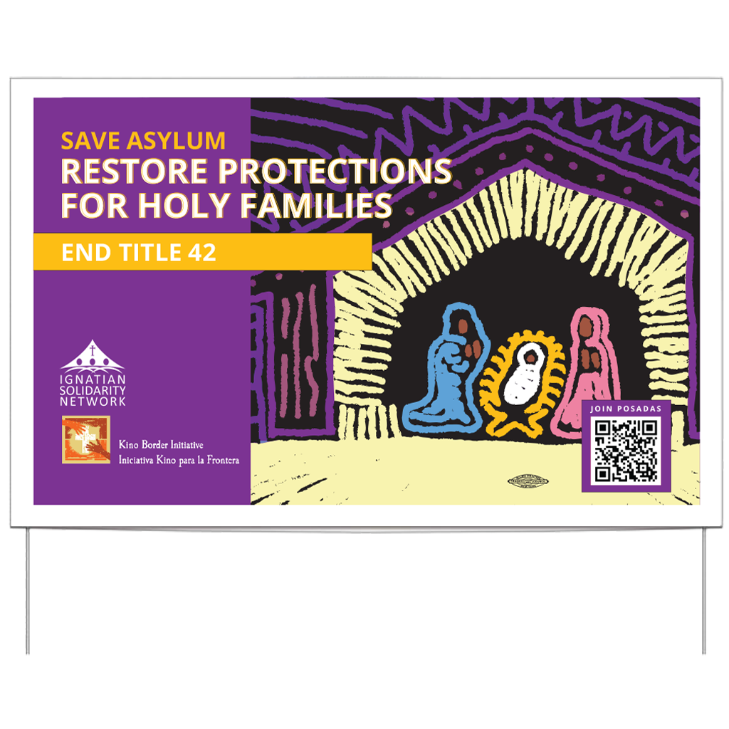 SAVE ASYLUM RESTORE PROTECTIONS FOR HOLY FAMILIES END TITLE 42 printed on Both Sides with a Nativity scene design. 18pt. White Poster Board 16"x26".