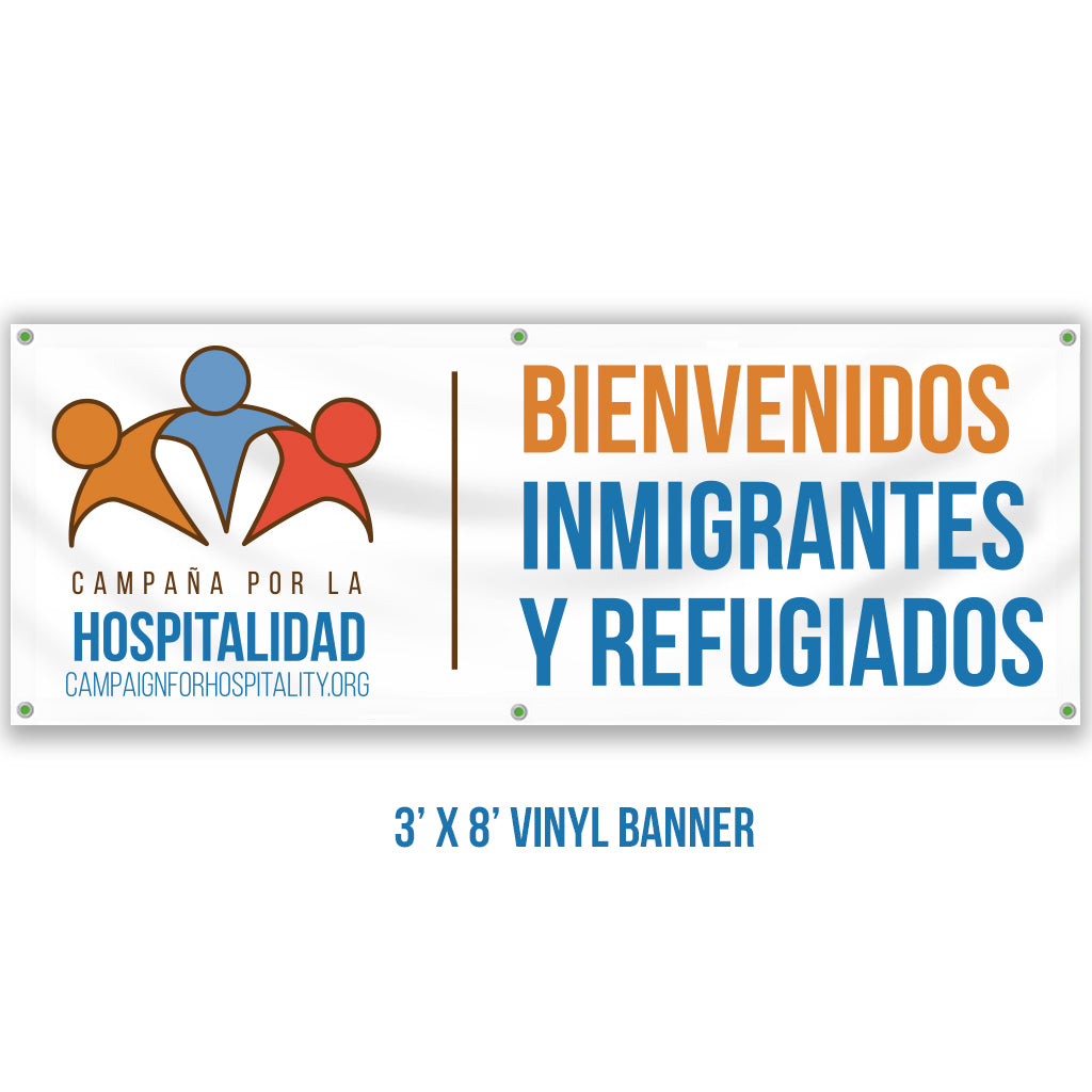 Large Spanish Immigrants and Refugees Welcome Banner