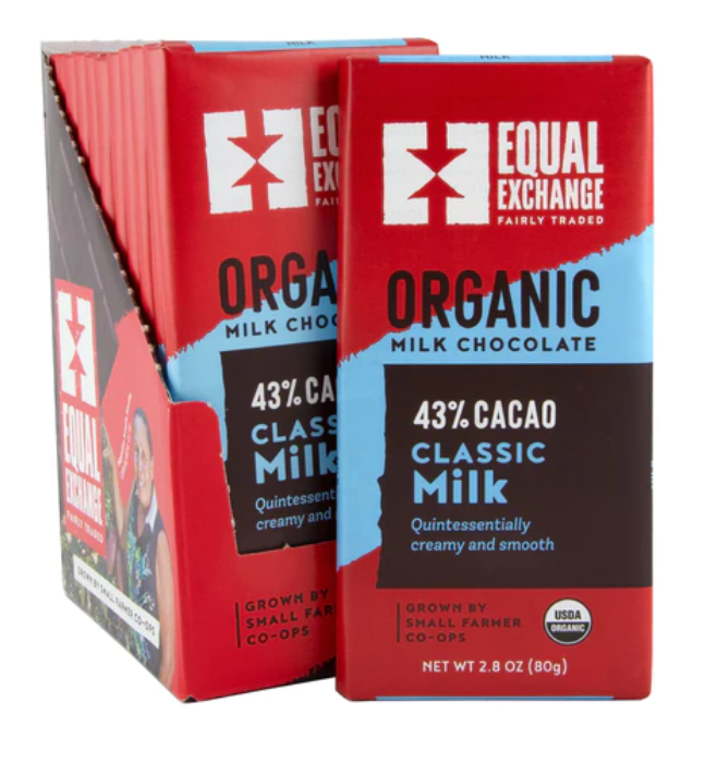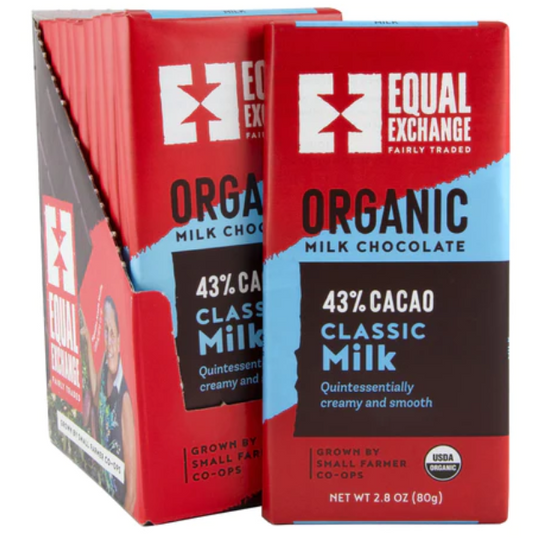 Chocolate flavor with caramelized sugar notes blended with creamy milk for a sweet treat sure to be popular with both kids and adults. The classic milk chocolate taste of this bar is perfect for s'mores, using in your favorite recipe or for a special afternoon indulgence in this Equal Exchange bar (2.8 oz). Vegan, soy- and gluten-free.
