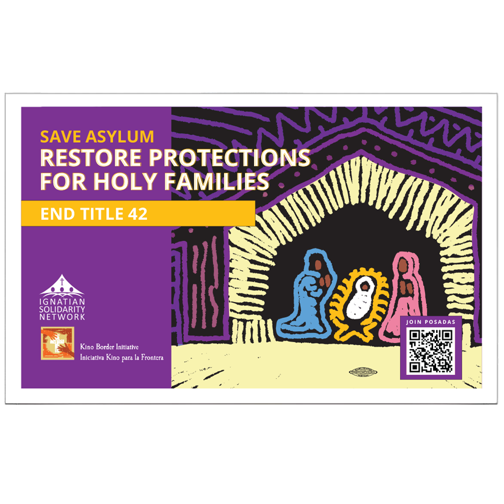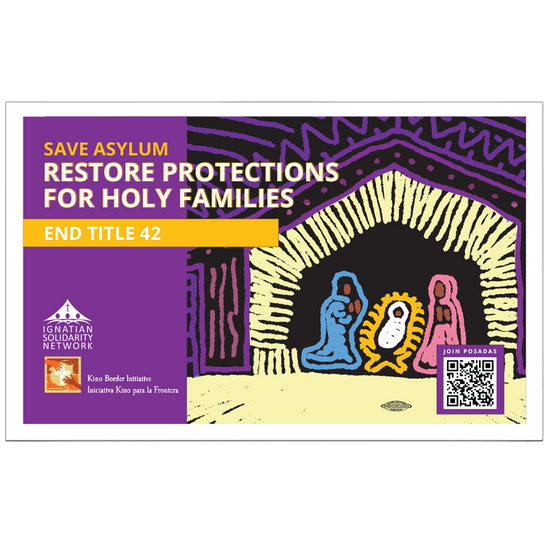 SAVE ASYLUM RESTORE PROTECTIONS FOR HOLY FAMILIES END TITLE 42 printed on Both Sides with a Nativity scene design. 18pt. White Poster Board 16"x26".